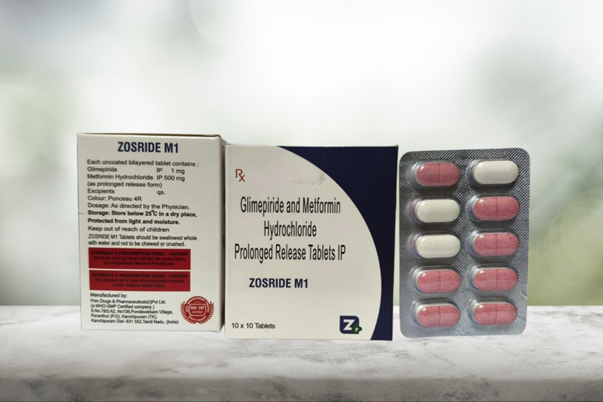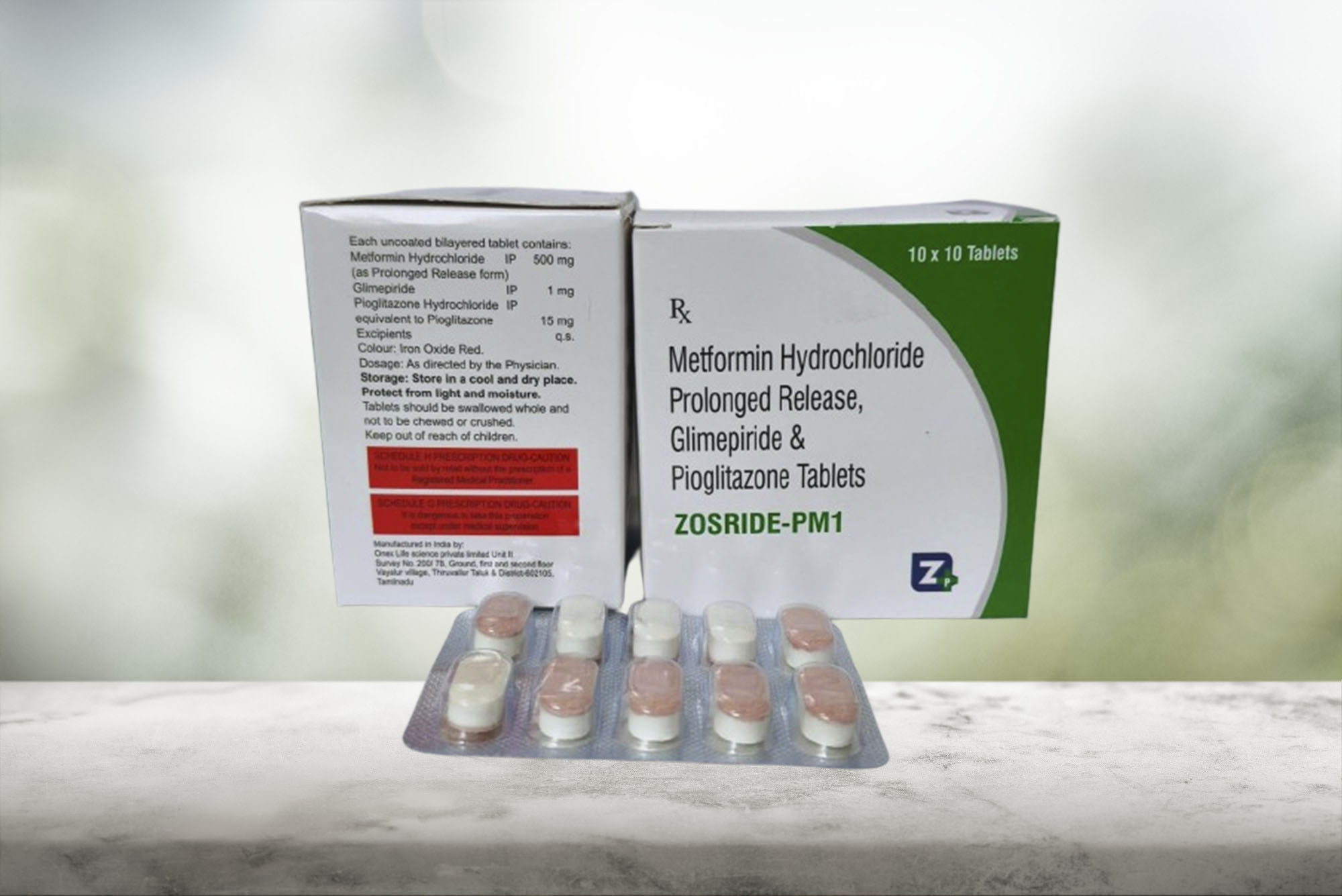 Glimepiride 1mg+Pioglitazone 15mg+ Metformin SR 500mg Tab