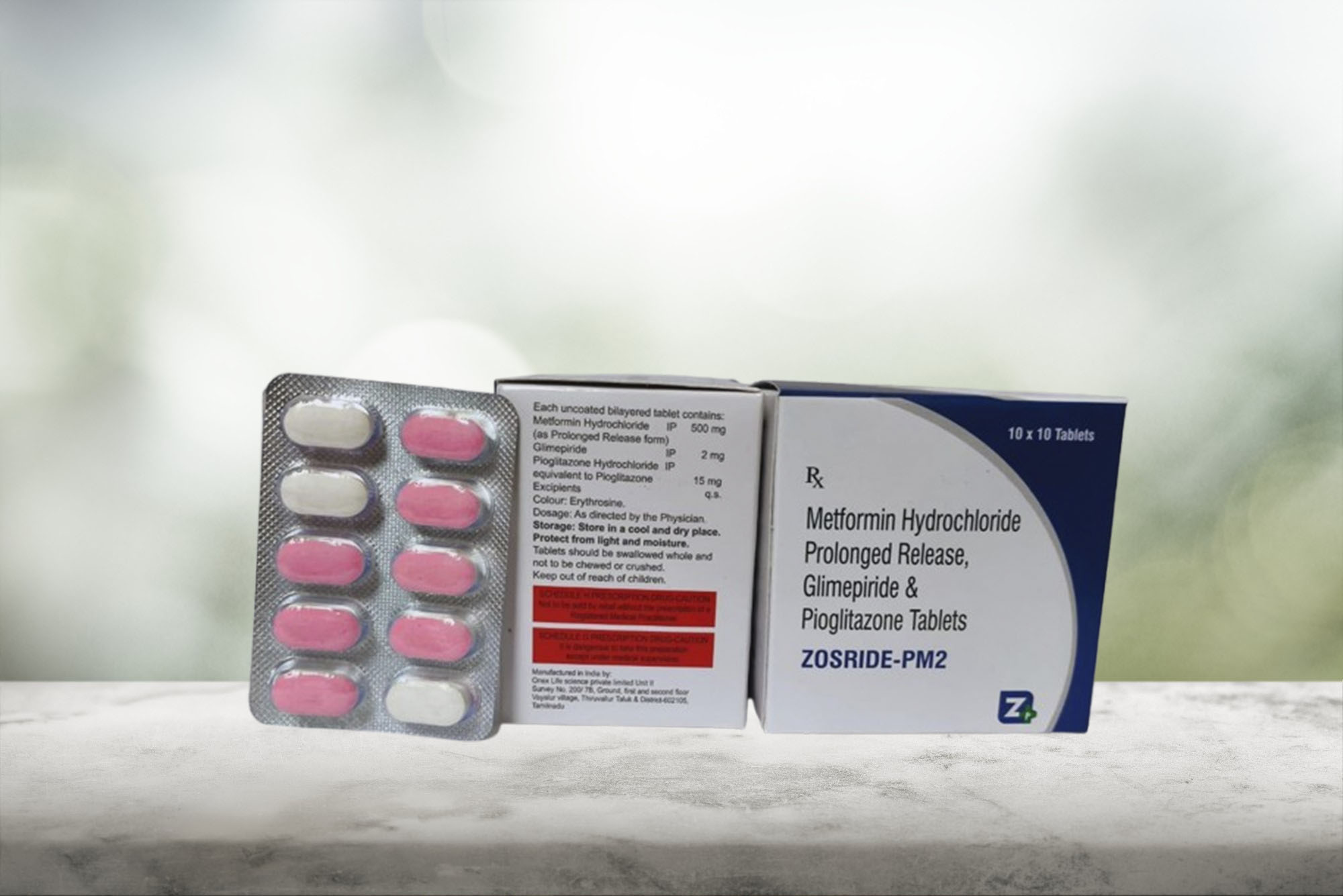 Glimepride 2mg + Pioglitazone 15mg+ Metformin SR 500mg Tab