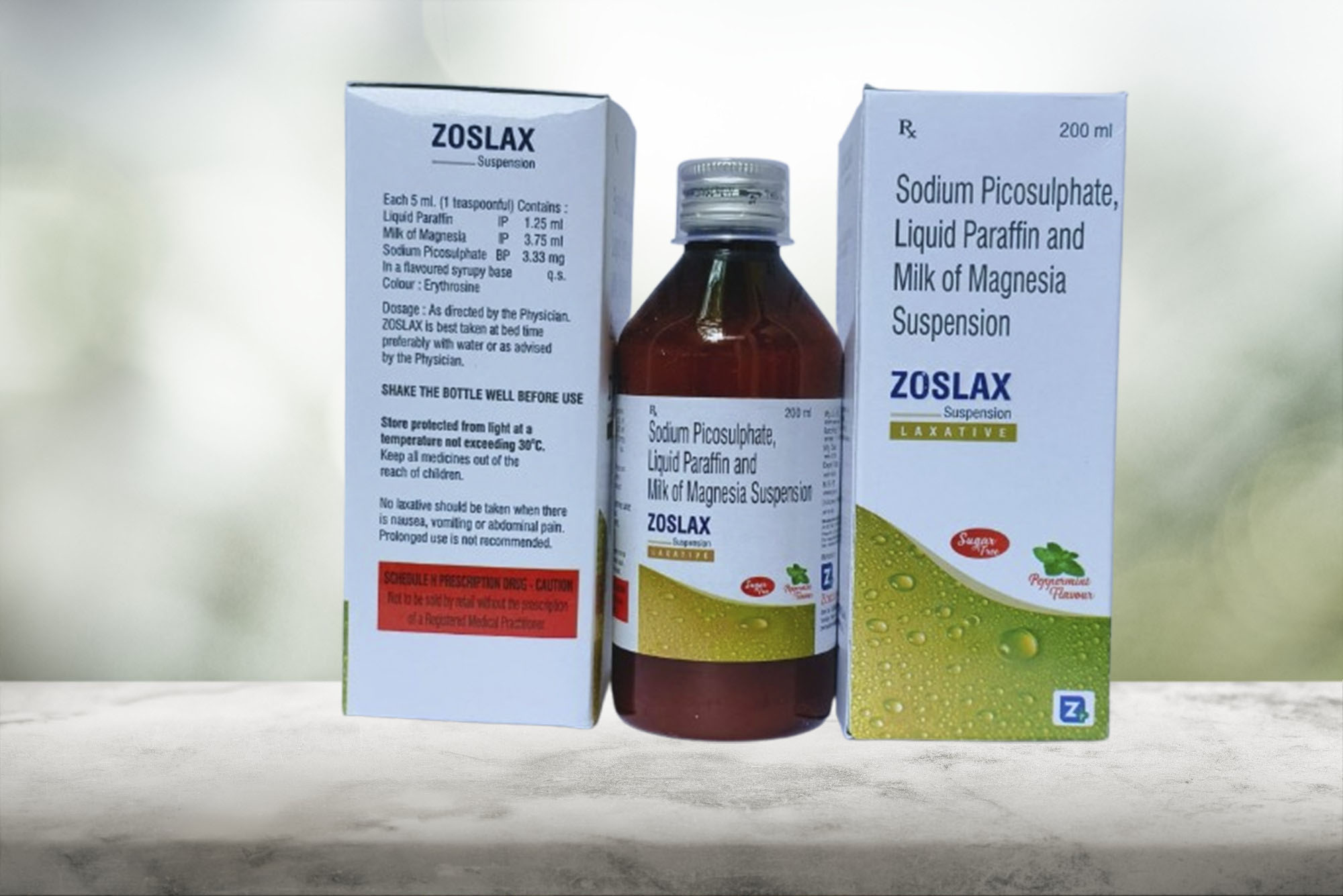 ZOSLAX 200 ml Suspension Sodium Picosulphate 33.3 mg + Liquid Paraffin 1.25 ml Milk of Magnesia 3.75 ml Suspension – Sugar Free