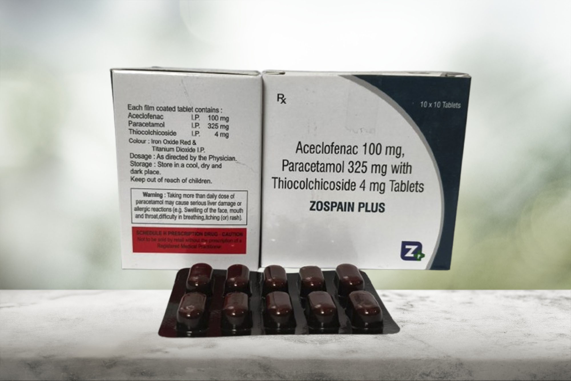 ZOSPAIN PLUS Aceclofenac 100mg + Paracetamol 325mg +Thiocolchicoside 4mg Tab