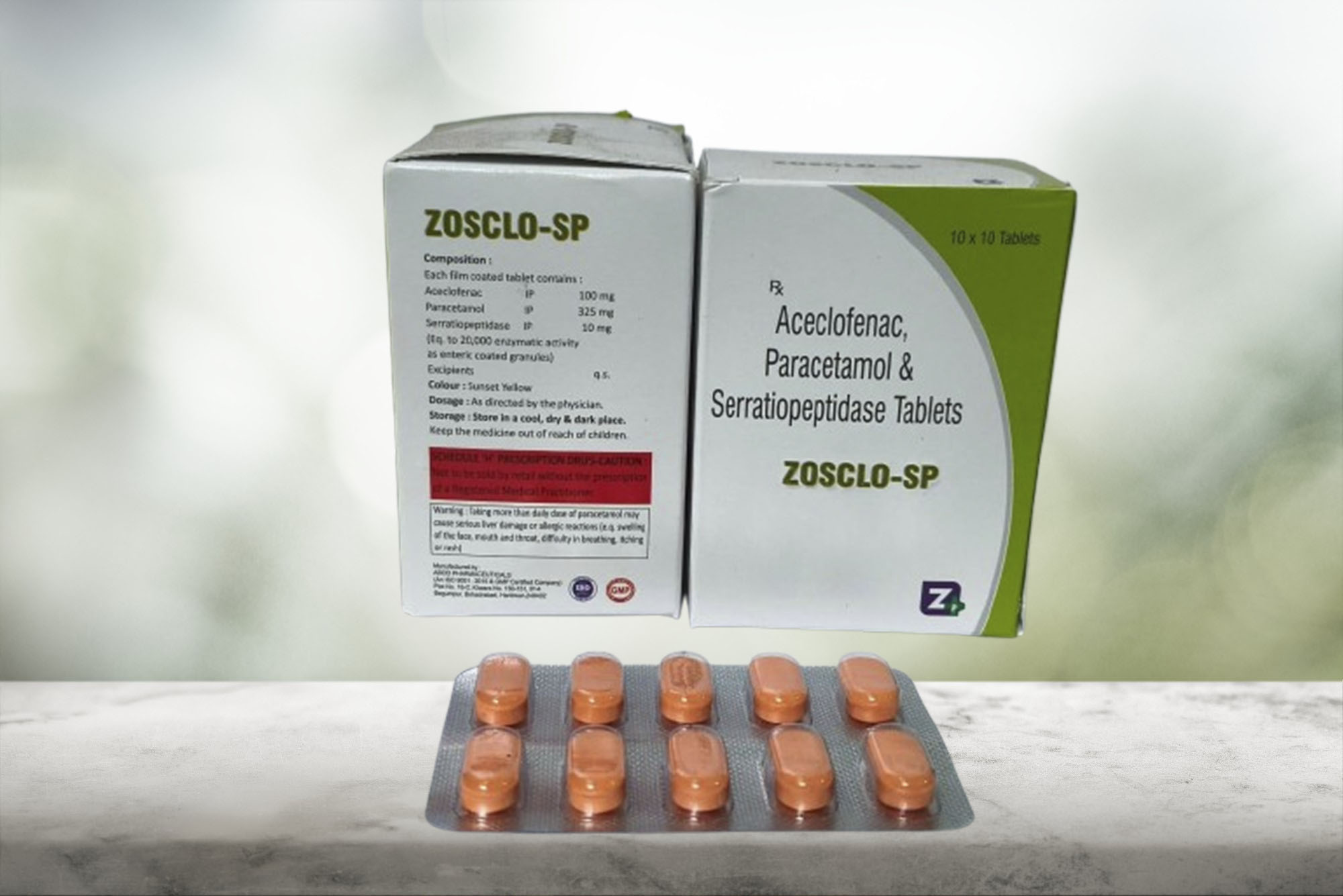 ZOSCLO-SP Aceclofenac 100mg + Paracetamol 325 mg +Serratiopeptidase 10mg