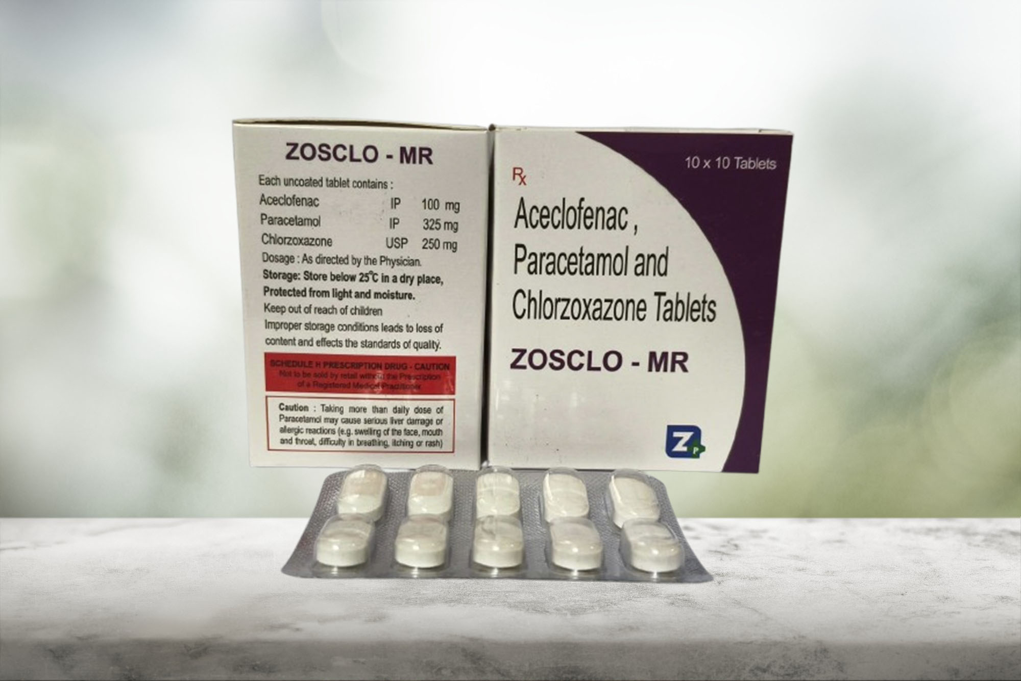 ZOSCLO-MR Aceclofenac 100mg+Paracetamol 325 mg + Chlorzoxazone 250mg